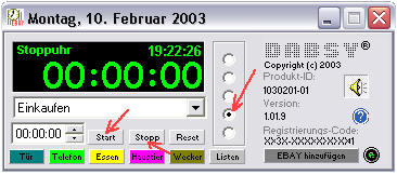 | Im Timer-Modus Stoppuhr wird eine bestimmte Zeit zwischen