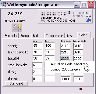 Trifft der gelesene Solarwert in eine der 6 Solarstufen sonnig, leicht bewölkt, bewölkt, stark bewölkt,